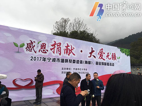 中国宁波网讯(实习生 袁朝丹 记者 陈敏) 今天上午9点,位于镇海大同公墓的“遗体捐献纪念陵园”内,人们手捧白菊,肃立在纪念碑前。哀乐响起,默哀、鞠躬、敬献鲜花……又是一年春草绿,又是一年清明时。由市红十字会主办的“感恩捐献·大爱无疆——2017年宁波市缅怀祭奠遗体(角膜)、器官捐献者活动”正在这里举行。