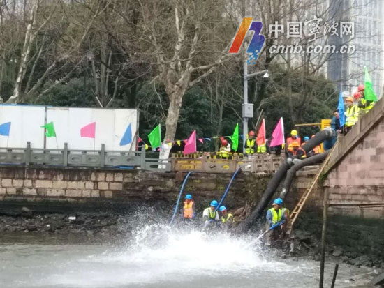 今天上午,慈溪市全民剿劣攻坚行动出征仪式在横河镇梅湖江清淤项目工地举行。记者看到,梅湖江已被拦腰截断,志愿者在岸边清理垃圾,施工人员在河床上开启水枪冲刷淤泥。据悉,今天该市18个镇(街道)共有138个项目开工。