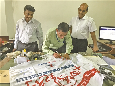 曾参加宁波港口班培训的斯里兰卡港口局官员为采访活动签名。(冯瑄摄)