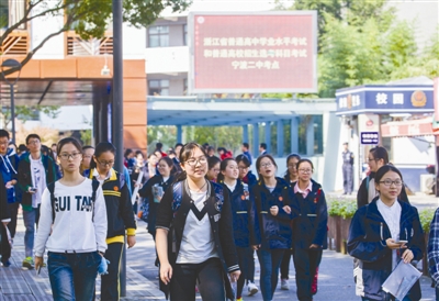 昨天上午11∶30,考生们轻松走出宁波二中考点。记者刘波摄