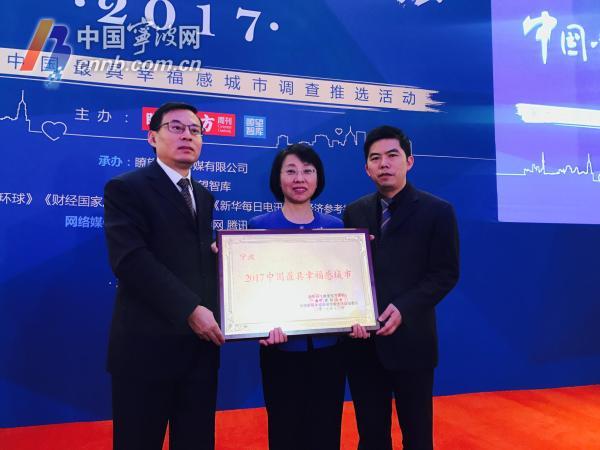 中国宁波网讯(记者张昊)昨天下午,“2017中国最具幸福感城市”调查推选活动结果在京发布。宁波市荣获“2017中国最具幸福感城市”荣誉称号,这也是我市第八次荣膺此项殊荣。同时,宁波还获得“2017中国最具幸福感城市”人民获得感案例奖,慈溪、余姚双双上榜“2017中国最具幸福感城市(县级)”。