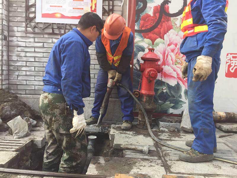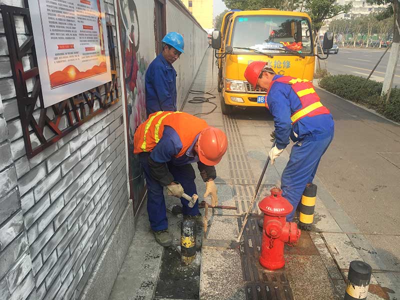(自来水公司工作人员正在拆除移位)