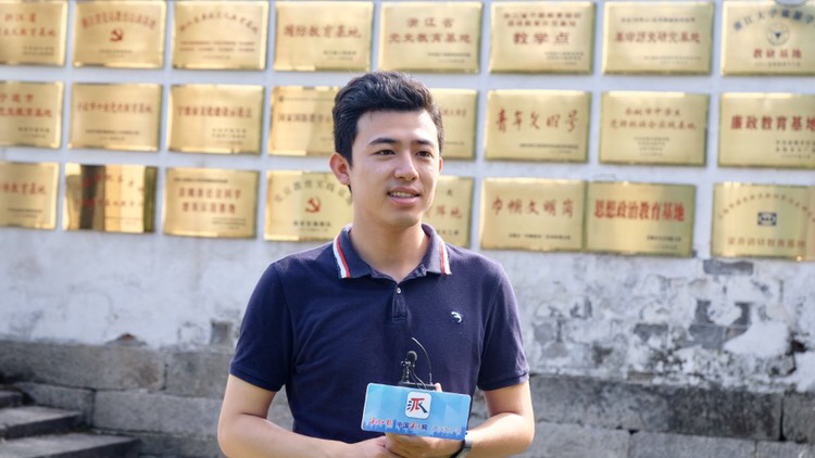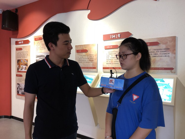 记者采访正在参观的游客,这是来自宁波的大学生,感受红色革命根据地的变化。