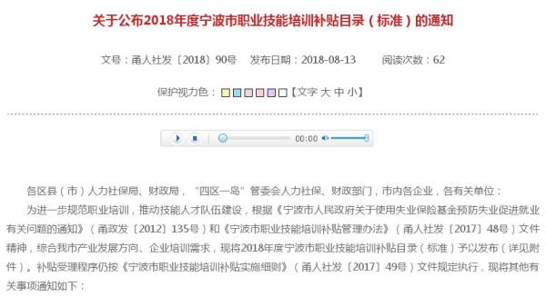 五、企业岗前技能培训不再核发《宁波市职业技术培训证书》,补贴标准仍按200元/人核发。技能大师工作室以师带徒补贴、公共实训中心补贴按照《宁波市人民政府关于使用失业保险基金预防失业促进就业有关问题的通知》(甬政发[2012] 135号)文件规定执行。