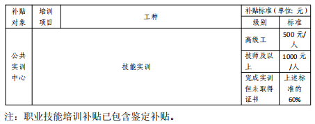 七、纳入紧缺职业(工种)高技能人才岗位补贴目录的工种。高级工及以上职业技能培训补贴标准上浮50%(分别为600元、750元、1000元)初级工、中级工职业技能培训补贴标准上浮30%(分别为150元、240元)。