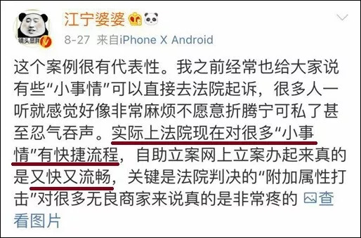 网友叶子说,“这不是钱的事也不是闲的,就是因为我们很多消费者抱着息事宁人的态度,才让店家猖狂,多一些像你这样的人,店家就不敢忽视了”,同时网友也点赞受理这个案件的法院:“这法院的态度简直可以做全国学习榜样!”