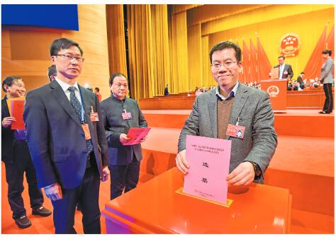 昨天,在市十五届人大四次会议第三次全体会议上,人大代表进行投票选举。(徐能 严龙摄)