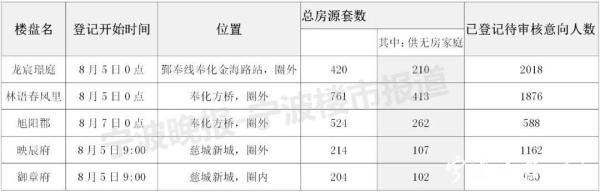 当然,从尚未结束购房意向登记的奉化、慈城新城几个新盘情况看,购房者对热门板块、相对低价的热门新盘,购买意愿依然相当强烈: