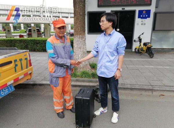 高温天,环卫工人不仅用汗水为文明城市创建出力,更用爱心文明之举为这座城市添彩。今天,鄞州区综合行政执法局通报了这样一起暖心事,一名研究生考生丢了行李箱,里面不仅有研究生毕业证,还有一台装着重要资料的电脑……环卫工人捡到后,怕他耽误了考试时间,专门送回去。