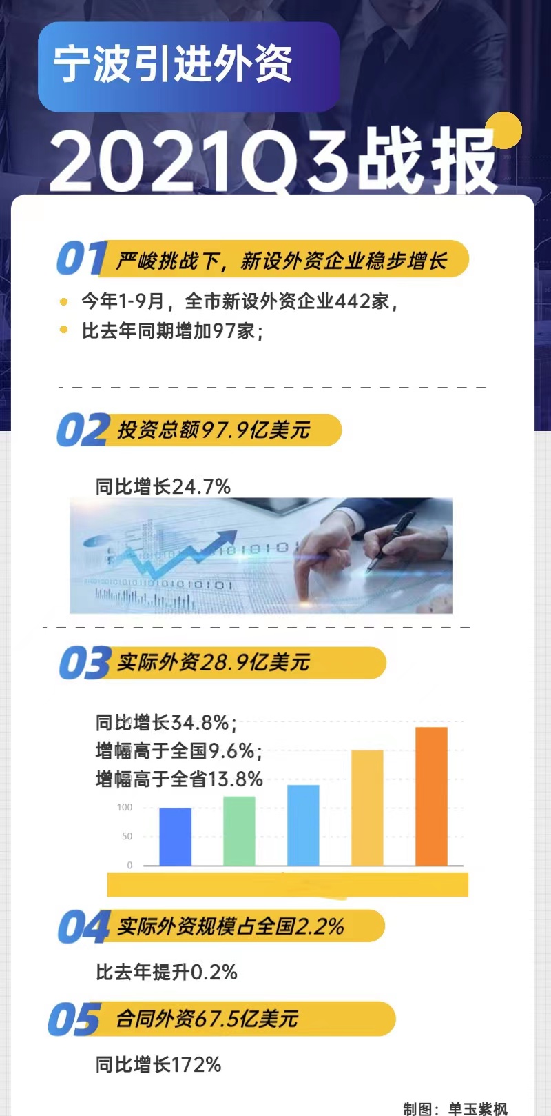 “‘十四五’开局之年,宁波外资招引不仅迎来开门红,而且跑出了加速度。”今天,市商务局相关负责人告诉记者,按商务部最新核准数据,今年1-9月,全市新设外资企业442家,比去年同期增加97家;实际利用外资28.9亿美元,同比增长34.8%,增幅分别高于全国、全省9.6和13.8个百分点。