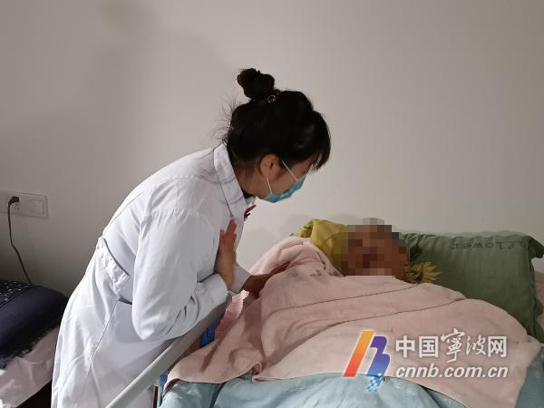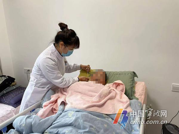 昨天上午9时45分,来自宁大医学院附属医院的陈芳芳护士如约上门。换上白大褂、核对患者医保卡和本人信息、心理安抚、拔管、吸痰、置入鼻胃管并固定、观察和记录鼻胃管引流液,陈芳芳一丝不苟完成所有环节。
