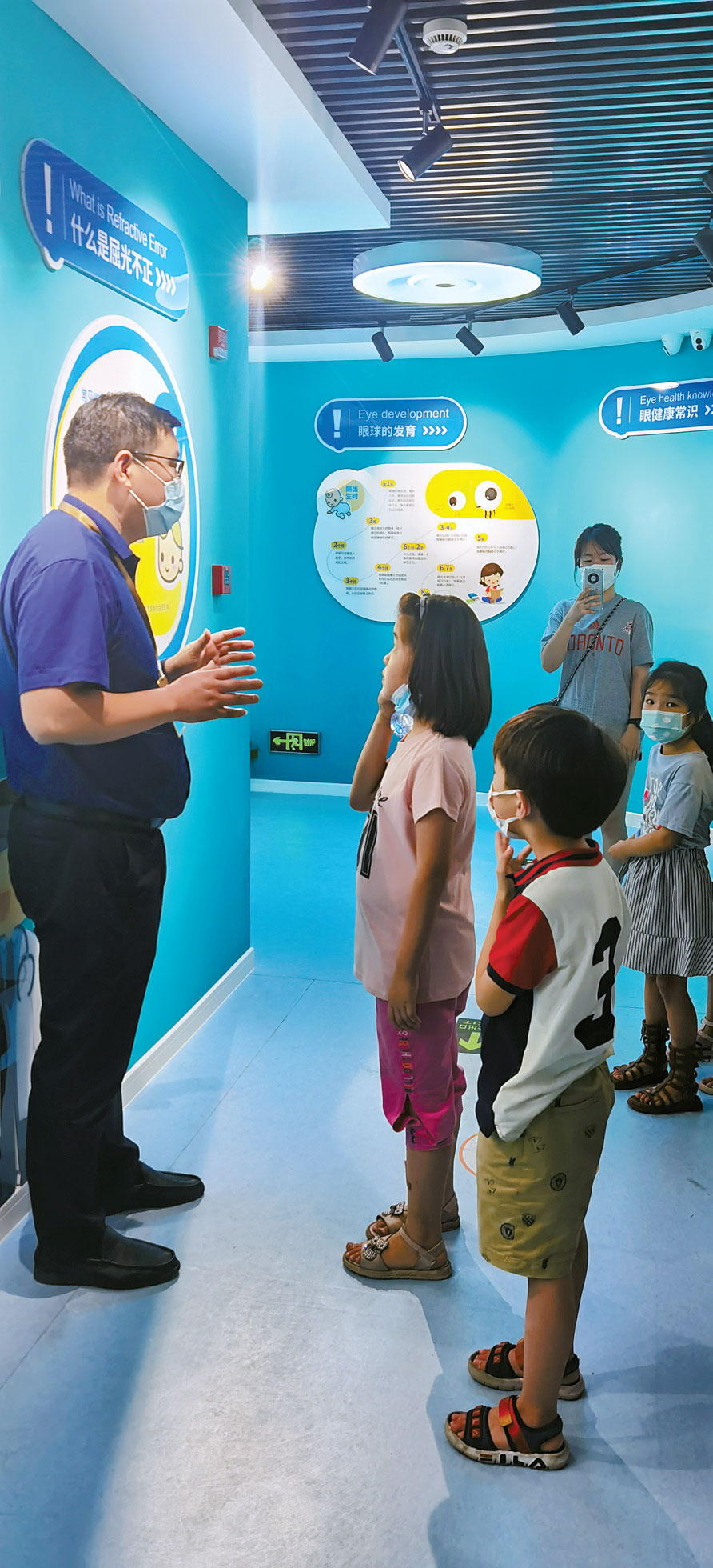 孩子们在参观宁波市眼科医院的眼睛科普馆。