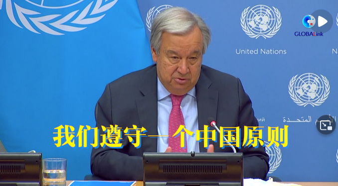 在联合国全球粮食、能源和金融危机应对小组报告发布会上,古特雷斯说:“我们的立场十分明确。我们遵守联合国大会决议,遵守一个中国原则。我们所有的行动都以此为依据。”