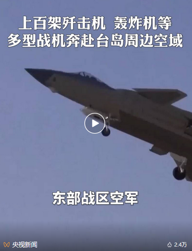 指挥员一声令下,导弹依次腾空而起,直刺苍穹;多枚炮弹扑向目标海域,精准命中目标;空军和海军航空兵出动上百架歼击机、轰炸机等多型战机,编队起飞,奔赴台岛北部、西南、东南空域。