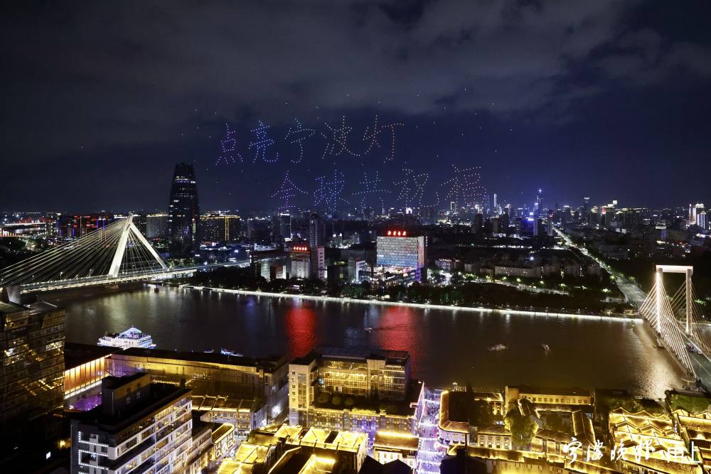 尤其是在“点亮宁波灯,全球共祝福”的字样出现在空中时,人群中更是响起阵阵掌声。