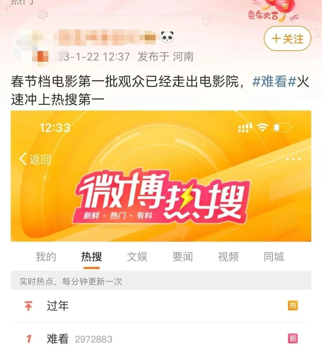 随着电影的热映,话题词“难看”一度冲上热搜第一,在该话题词下,《无名》、《满江红》、《深海》、《交换人生》等电影都没能逃过观众的吐槽。