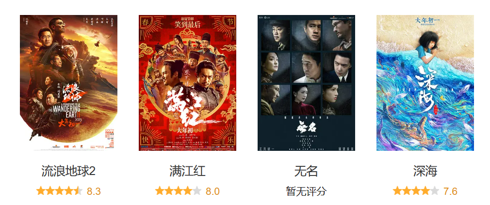 1月23日,部分春节档影片在豆瓣已开分,其中分数最高的为《流浪地球2》,豆瓣评分为8.3分。