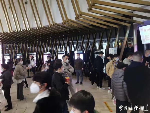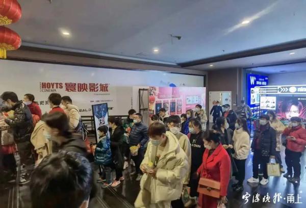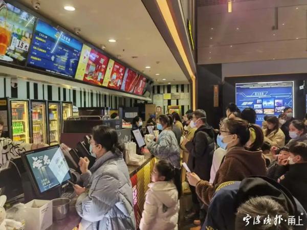 1月22日下午1点多,记者来到鄞州万达影城时,这里的大堂已经被候场的观众占满。售票口、检票口、卖品档口,工作人员已经忙成了三头六臂的“哪吒”。而此时,下午档的高峰才刚刚开始。