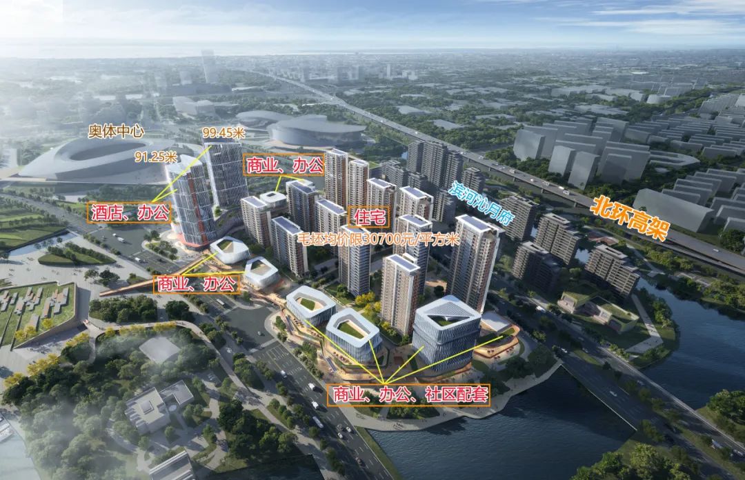 这是一块南向一线临姚江的商住混合用地,于2022年4月在当年市区第一批集中供地时,由宁波开投&北坤投资以楼面价9600元/平方米拿下。