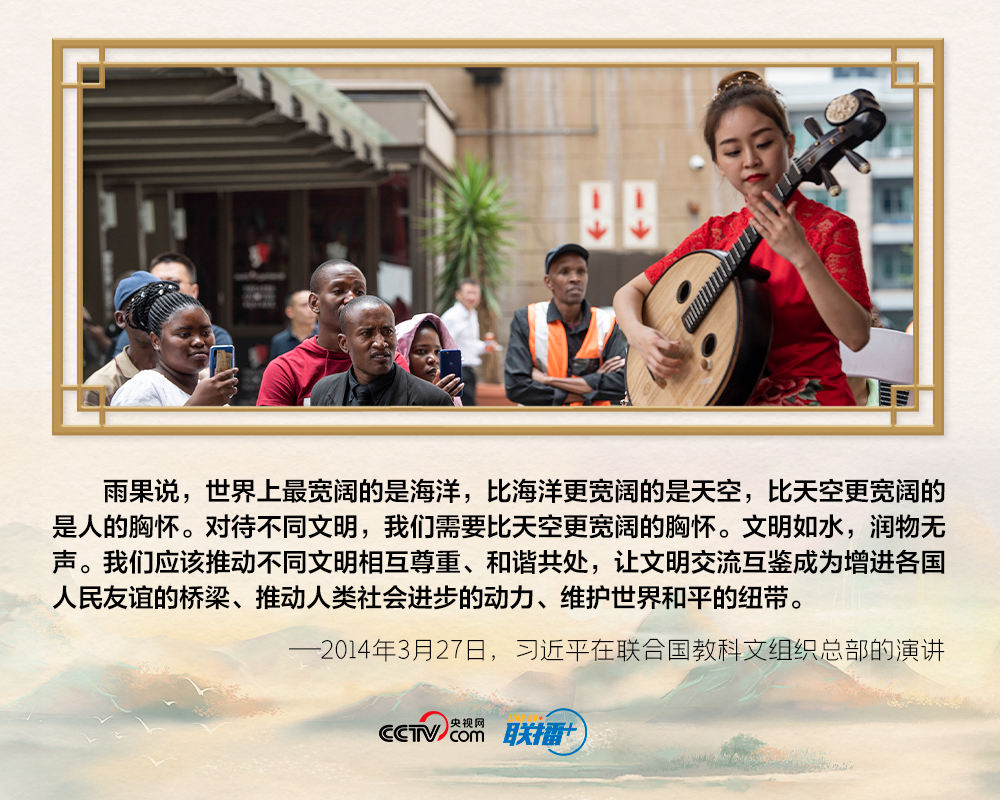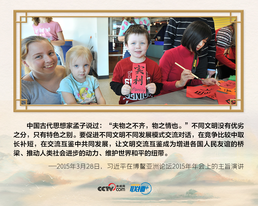 央视网《联播+》推出精美海报,与您一起学习领悟习主席的文明交流观。