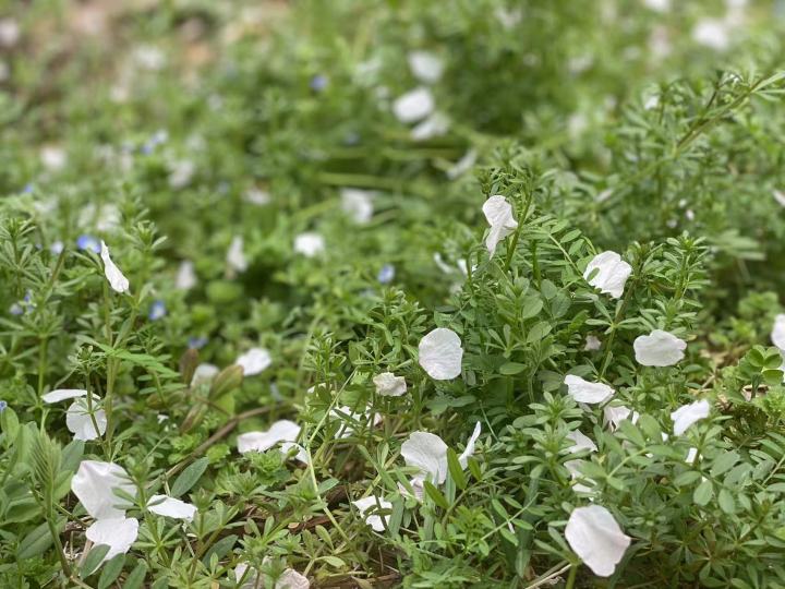 春风拂面,落英点点,浪漫的花花独自绽放,还没有游人来涉足欣赏。