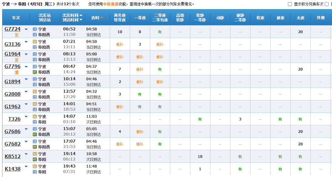 记者在铁路12306官网查询车票信息发现,宁波往返杭州、温州、台州、上海等地的车票十分紧俏,清明节当天前往长沙、阜阳等城市的热门车次都出现了售罄的情况,有出行计划的旅客应合理安排行程,在官方购票渠道购买车票。