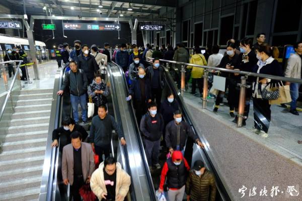 截至9:00,宁波轨道交通各重要站点迎来返程客流。1号线宝幢站、高桥站、2号线清水浦站、3号线姜山站等四个重要站点共计进出站2.5万人次,其中1号线宝幢站共计进出站21874人。
