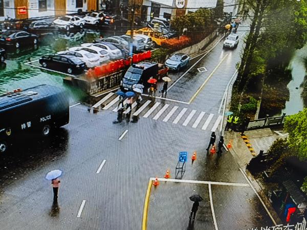 目前,现场交警和志愿者引导车辆到指定位置停放,秩序井然。