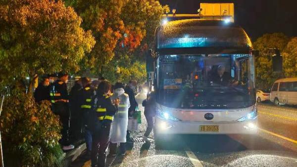 市民乘坐公交接驳车辆(记者 张培坚/摄)