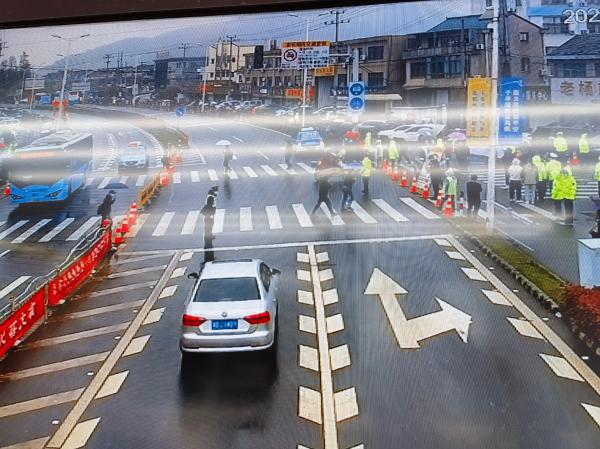 宁波交警魏杨在东钱湖象坎公墓附近执勤。他从一线发来最新路况,受阴雨天气影响,当地交通流量不大,通行正常。