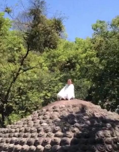 4月4日中午,四川乐山大佛景区内,一女子爬上大佛头顶盘腿打坐的视频在网上热传。