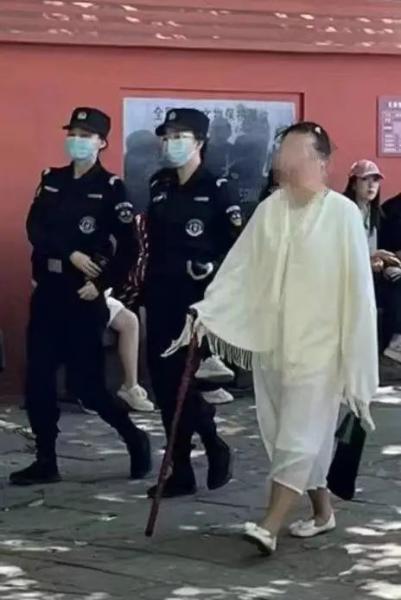 另外一段视频则显示,该女子拄着拐杖,从大佛头顶后部缓缓走了下来,有两名身穿警服的人员将其带离。