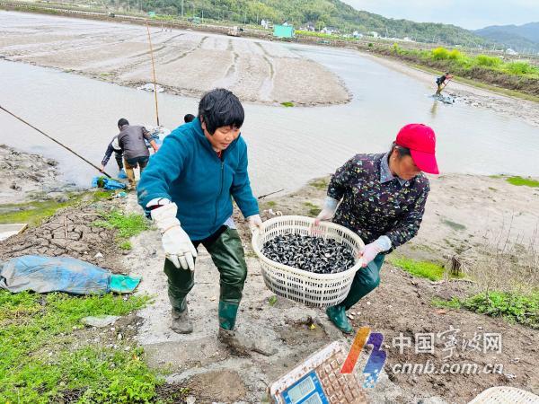 随着箩筐的摇动,青蛤互相擦碰,“咔咔”的声响也传递着养殖户收获的喜悦。在宁波,青蛤养殖集中在象山港奉化沿海和宁海三门湾等地滩涂塘。目前,仅奉化裘村一地,南美白对虾和青蛤混养的养殖户约130户,养殖面积上千亩。青蛤采捕将在4月结束,接下来养殖户马上要投放虾苗、蛤苗,开始新一季的养殖。