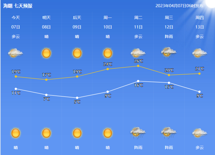 同时,最高气温也是“慢性子”。一直到4月9日,最高气温都将在20℃“门外”徘徊,4月11日有望实现“质”的飞跃,升至23℃-26℃。