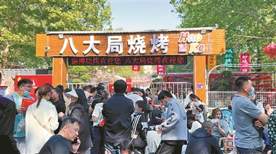 ②淄博“八大局烧烤”前人潮涌动。(谢舒奕摄)