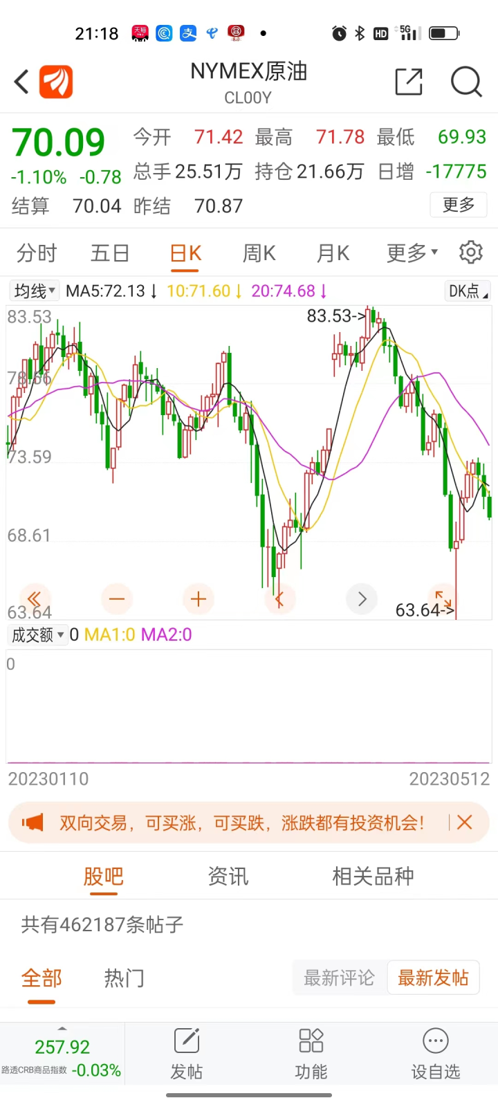 本周五,纽约原油期货最低价再度跌破70美元/桶大关,收盘报70.09美元/桶;布伦特原油期货价格收盘报74.17美元/桶,也直逼70美元/桶大关。