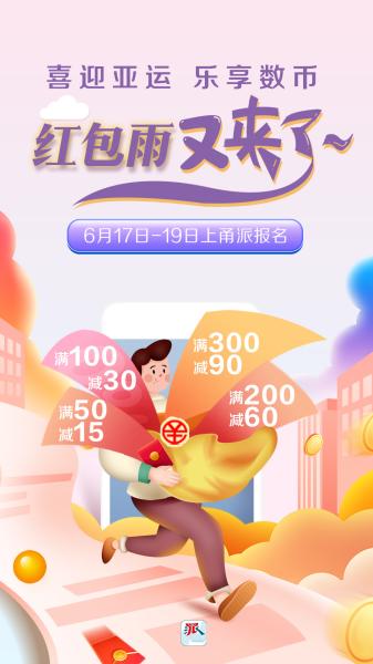 6月17日起至6月19日,第四轮全市数字人民币消费红包活动报名开始,将发放数字人民币消费红包53013个、总金额超170万元。