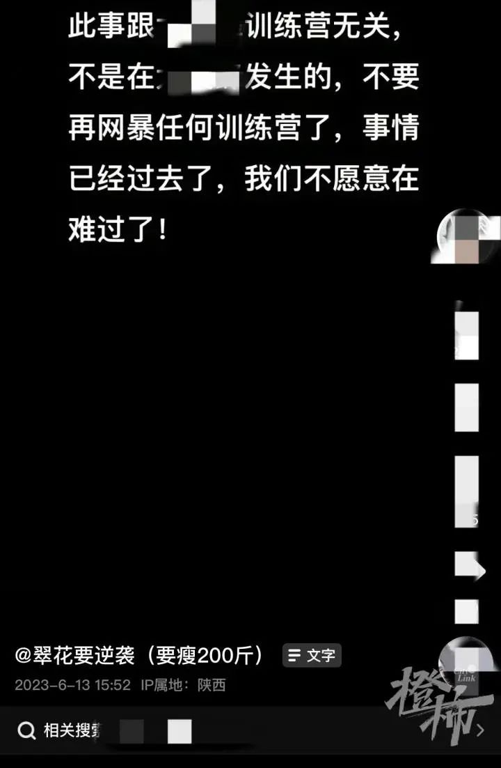 值得一提的是,“翠花要逆袭”的视频账号今天只显示了两个作品,作者发文称,请大家停止制造舆论压力,事情已经过去了,不能再次受到伤害;另一作品中,发布者称,此事与某训练营无关,不要再网暴任何训练营,不愿意再难过了。