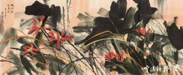 “画荷花应该多角度地去画,同时色彩也应该是丰富的,天光水色再加上泥泞、水草等,各种各样的关系。我画荷花跟小时候闯祸躲在荷塘中的澡盆里有很大关系。”