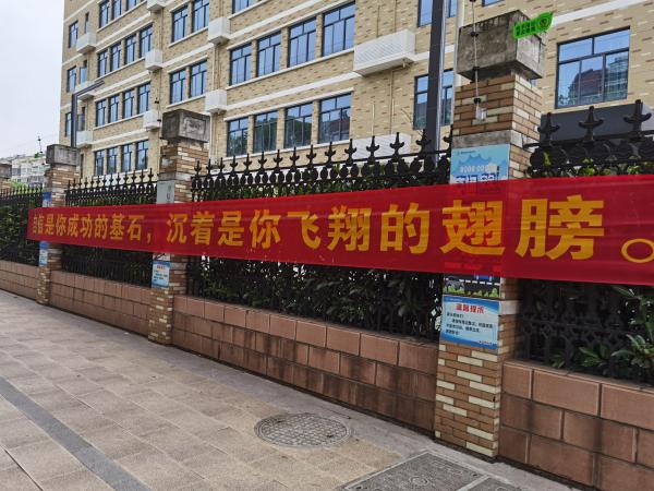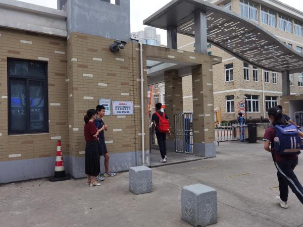 这是该校办学22年第一年作为中考考点,主要为了减少学生外校考试的奔波,以前学生均在钟公庙考点参加考试。该校郑校长介绍,今年共有28个考场,1个备用考场。监考老师由鄞州实验中学的老师担任。