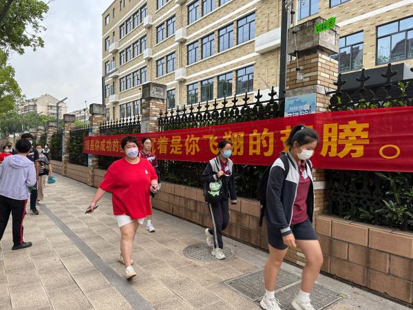 一位妈妈穿着红色的T恤为孩子加油鼓劲,胸前是个大大的“稳”字。她说,孩子读书以来,这是一个有纪念意义的日子,希望他能稳定发挥。(记者 沈莉萍 孔锡成)