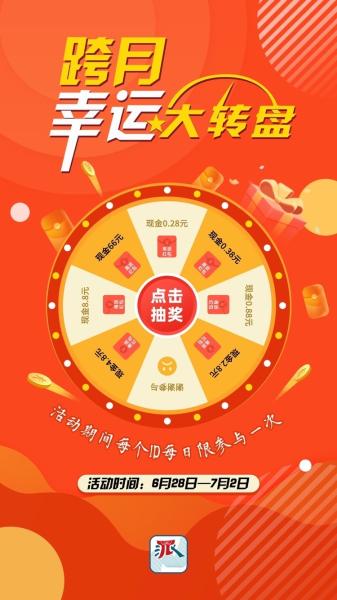 明天上午7时起,甬派推出“跨月幸运大转盘”活动,参与活动即可抽取现金红包,红包金额随机,单个最高66元。