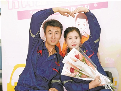 昨天,集卡车司机孙丹也是瞒着妻子把她带到了拍摄现场,拍摄下两个人第一张七夕情侣照。妻子被平时不善言辞的丈夫突如其来的浪漫“吓”了一跳。