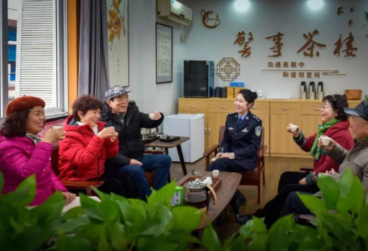 镇海公安利用“警事茶楼”积极构建和谐警民关系。市政法委供图。