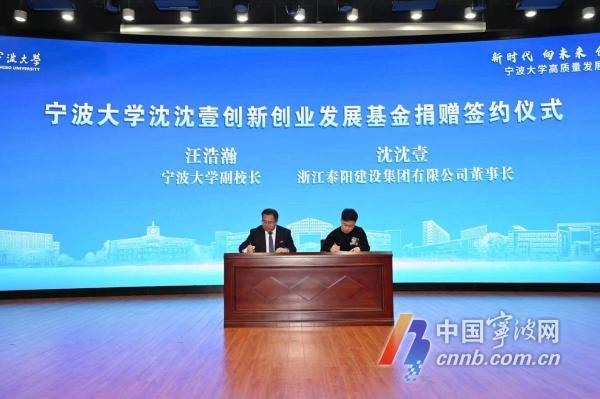 浙江泰阳建设集团有限公司总经理沈沈壹先生捐赠1000万元人民币设立“宁波大学沈沈壹创新创业发展基金”,支持宁波大学开展创新创业各类活动,提升大学生创新创业能力。