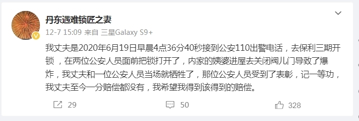 近日,“丹东遇难锁匠”一事引起网络热议,相关话题接连登上热搜。锁匠之妻王艳丽希望警方进行赔偿,丹东警方工作人员在接受媒体电话采访时表示,目前无法回应此问题,但不要光听网上的。