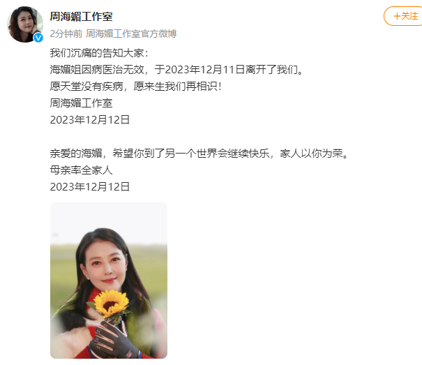 12月12日晚,@周海媚工作室 发文: