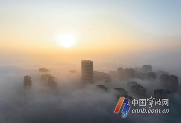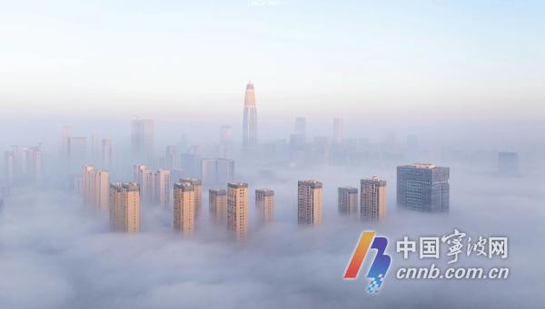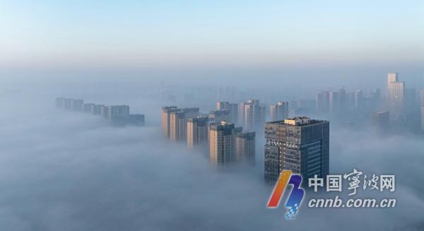 1月4日清晨,甬城出现平流雾景观,从高空俯瞰,城市建筑若隐若现,宛若仙境,朦胧中别有一番韵味。