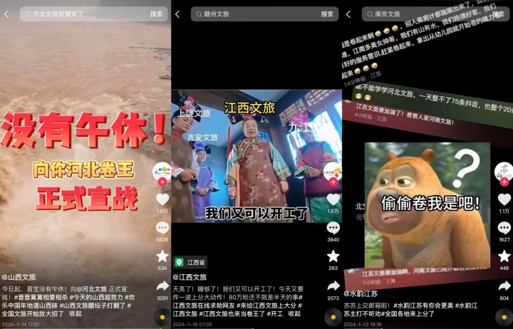 河北文旅的工作强度,让多地文旅局“睡不着”。1月14日,山西文旅直言“今日起,没有午休,向河北卷王宣战。”四川、山西、河南、山东等多省同样用“题海”战术,轰炸式刷屏网友手机。