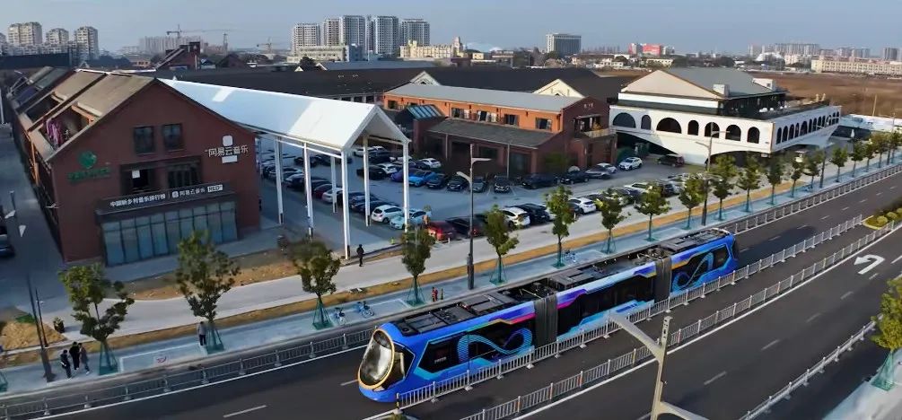 据介绍,“甬创号”列车采用3编组,车长32m,车宽 2.65m,最高运行速度77km/h,载客量283人。新一代SRT3.0能实现2/3/4节灵活编组,通过“图像识别+北斗定位”感知地面虚拟轨道,可以实现有人值守的自动驾驶。这是一款融合了轨道交通与道路交通优势技术的产品,归类于轨道交通的“电子导向胶轮系统”,具有超智能、超灵活、超环保、超舒适等优点。